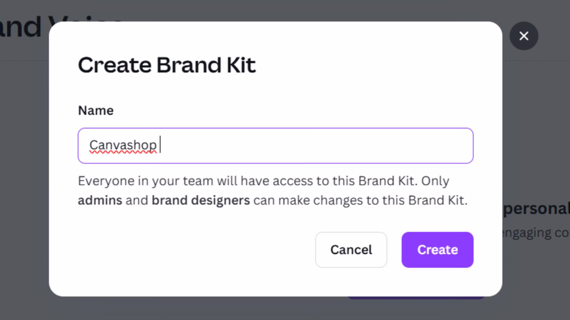 از سه نقطه بالا گذینه Create new Brand Kit بزنید و یک برند کیت جدید درست کنید
